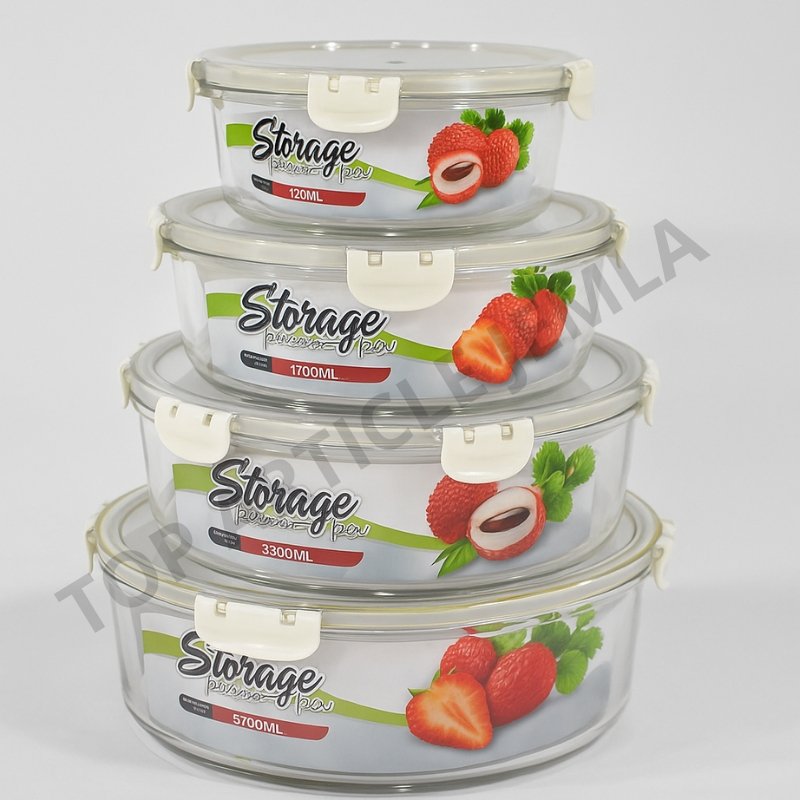 طقم 4 علب حفظ الطعام مستديرة – زجاج بغطاء محكم – من 120 مل إلى 5700 مل