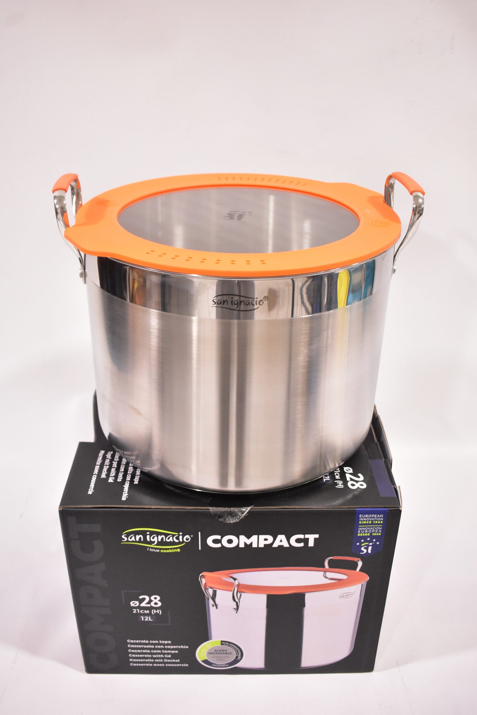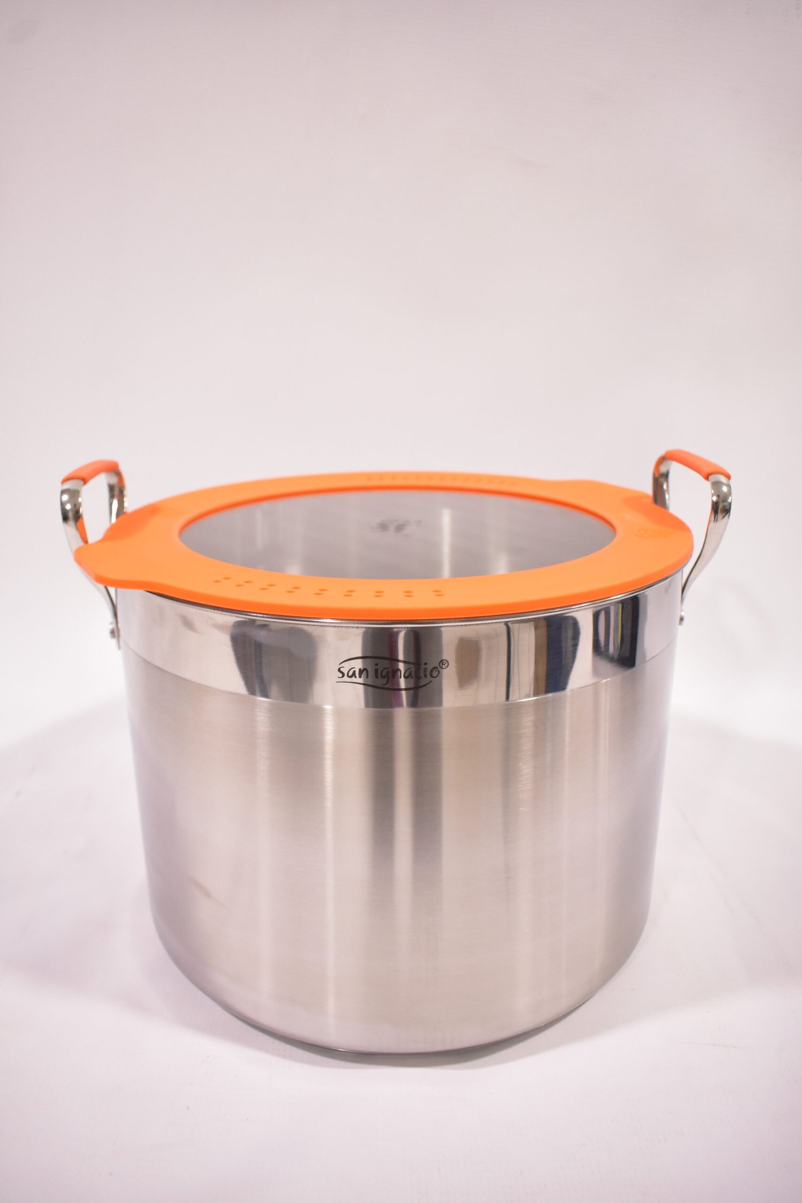 طنجرة بغطاء زجاجي “سان إجناسيو”, قدر سان إغناسيو كومباكت، قدر ستانلس ستيل للتحريض، قدر طهي مدمج، طقم أواني طبخ برتقالية، طنجرة الطبخ، معدات الطهي, مقلاة