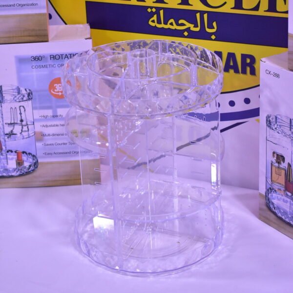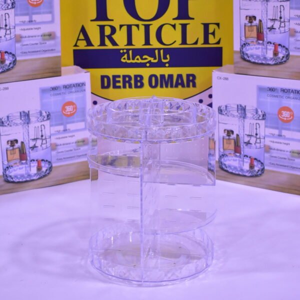 رتّبي أدواتك التجميلية بكل سهولة مع هاد منظمة المكياج 360 الدوّارة بزاوية 360°، اللي كتسمح بالوصول لكل المنتجات من جميع الزوايا. مصنوعة من أكريليك شفاف بسُمك متين يمنح رؤية واضحة للمحتويات ويساعد على الحفاظ على ترتيب أدوات التجميل.