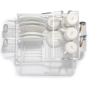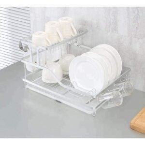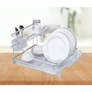Conçu pour les cuisines modernes et les espaces optimisés, cet égouttoir à vaisselle à deux niveaux est l’allié idéal pour un séchage rapide et un rangement ordonné de votre vaisselle. Il s’intègre facilement sur votre plan de travail, à côté de l’évier.