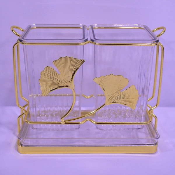 Porte Couverts de luxe | Organisateur ustensiles cuisine | Support couverts doré | Rangement plan de travail | Feuille de ginkgo décoration | Accessoire cuisine chic