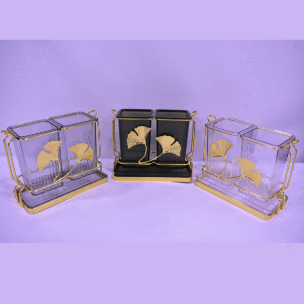 Ce porte-couverts double avec plateau récupérateur est la solution idéale pour organiser vos ustensiles de cuisine avec une touche d’élégance, que ce soit sur votre plan de travail ou votre table à manger.