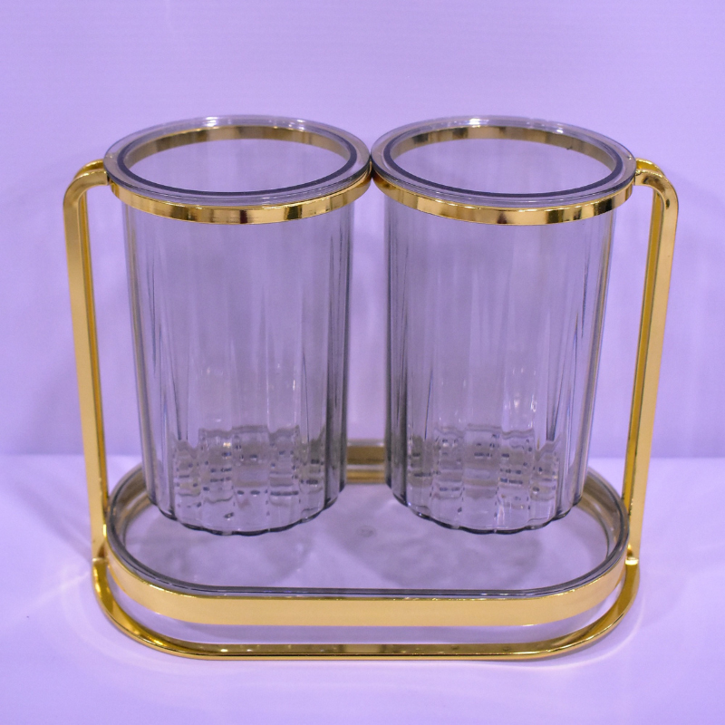 Matière : Cadre métal doré ; Gobelets plastique alimentaire (PET) ; Plateau d’égouttage.