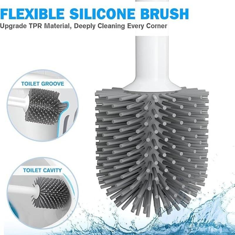 Brosse WC silicone | Balayette WC | Brosse toilette antibactérienne | Brosse WC avec support | Porte-brosse WC | Brosse WC murale | Support ventilé anti-odeur | Brosse WC flexible | Poils silicone anti-rayures | Séchage rapide | Nettoyage sans traces | Réservoir goutte-stop | Design compact salle de bain